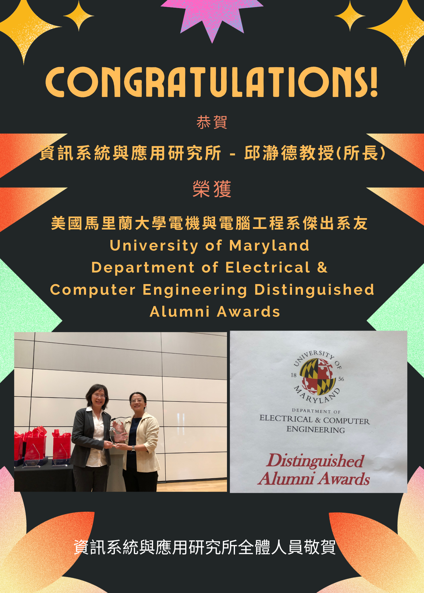 賀!邱瀞德所長獲美國馬里蘭大學電機與電腦工程系傑出系友