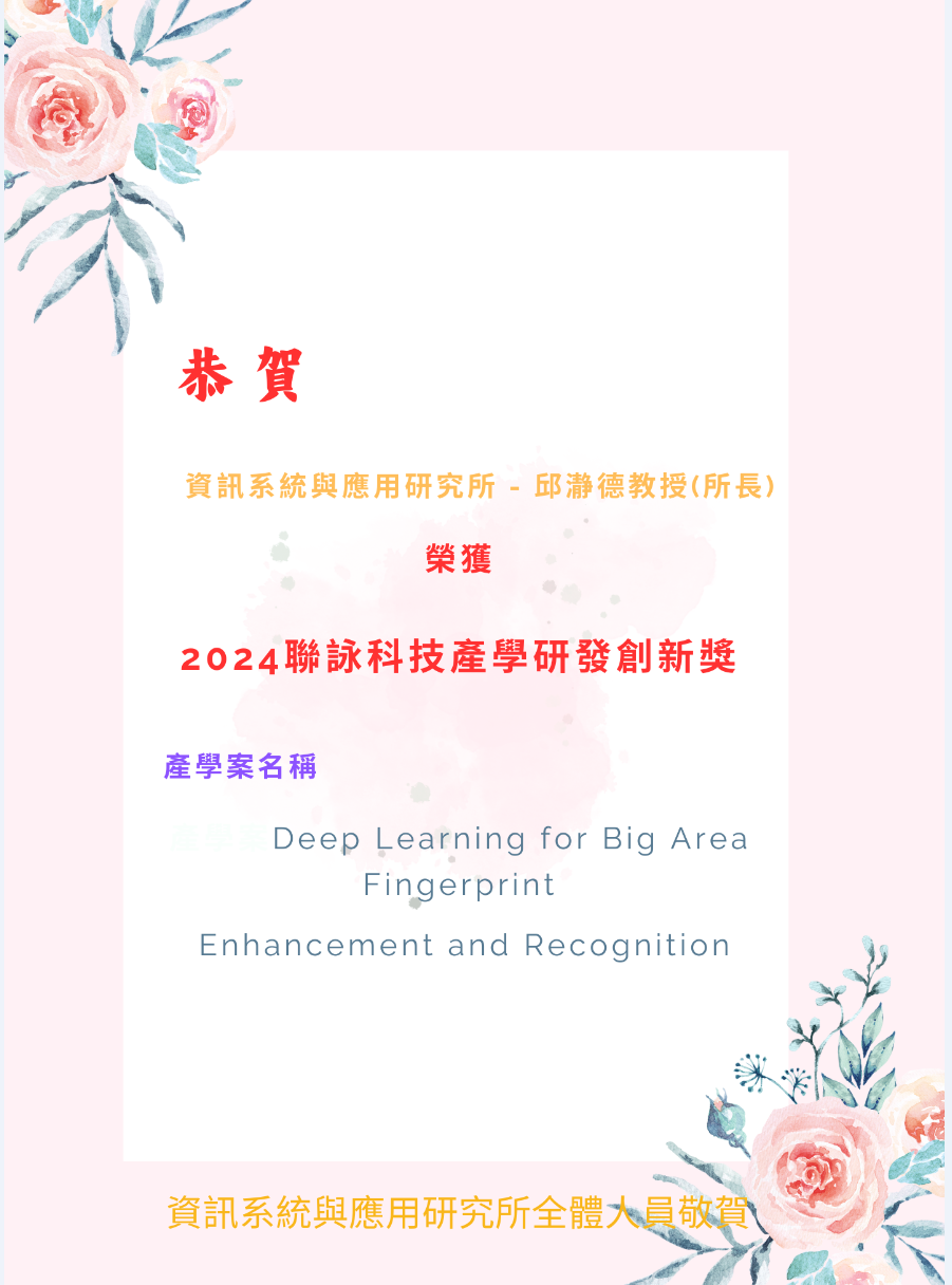 恭賀!! 邱瀞德教授教授(所長)榮獲2024 聯詠科技產學研發創新獎